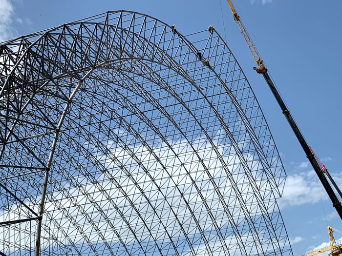 (2)网架加工前应对现场尺寸进行复测,确认无误后方可进行加工、安装;网架制作、运输、安装应遵守《空间网格结构技术规程》JGJ7-2010、《钢网架和田螺栓球节点》JG/T 10-2009、《钢网架和田螺栓球节点用高强度螺栓》 GB/T 16939-2016、《和田钢结构和田工程和田施工规范》 GB50755-2012、《和田钢结构和田工程施工质量验收标准》 GB50205-2020。